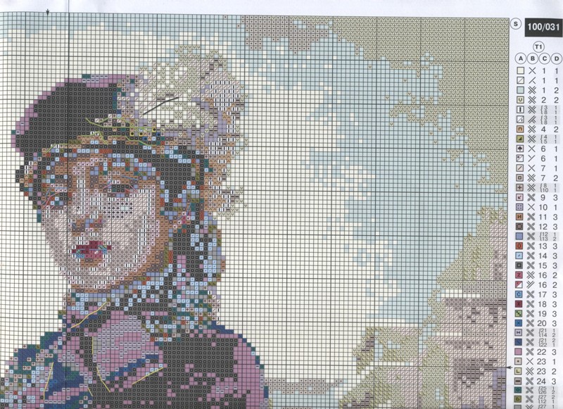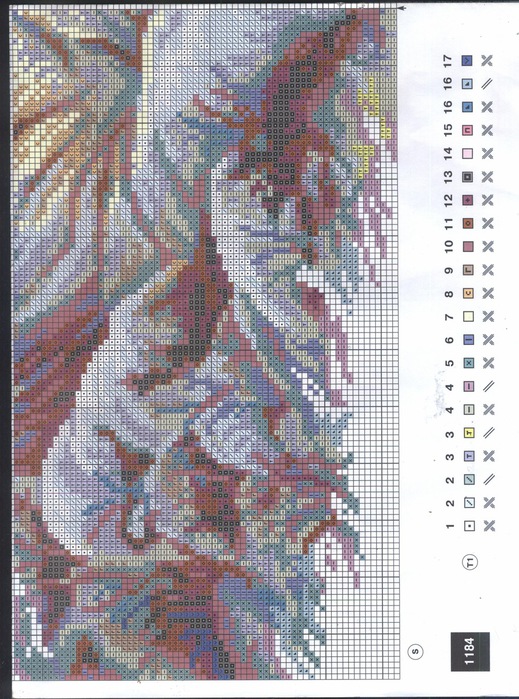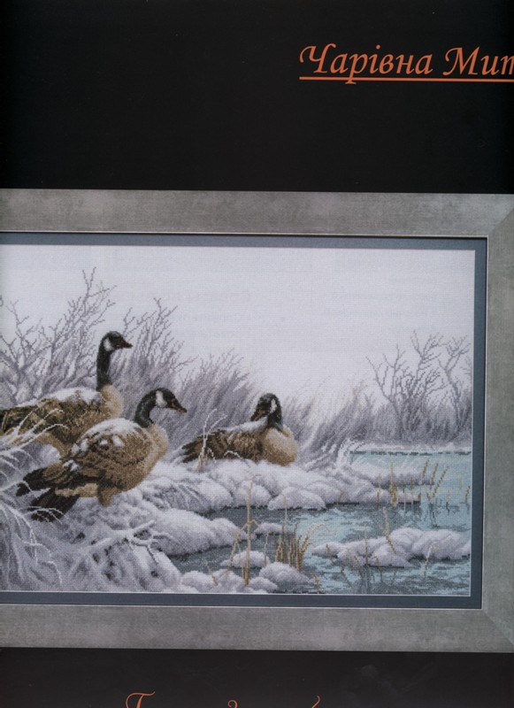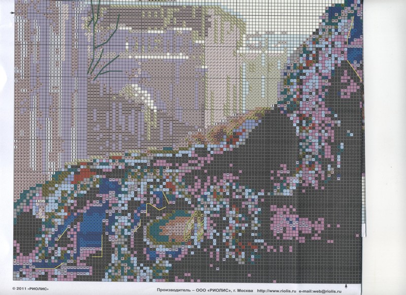 Все знакомое, родное)))) Схема у вас хорошо отсканировалась. Единственное жаль, что нет ключа с номерами мадейра к ниткам, чтоб правильно купить. А то самостоятельным подбором ведь не всегда угадаешь. Кстати, у меня одного цвета все таки не хватило. Согласно схеме - 11. При чем я вышивала экономней уже некуда. И не хватило то кусочка ну сантиметров 15-20  . Пришлось купить. Хотя остальных цветов с озера осталось прилично - еще на один набор хватило бы. Надеюсь, что остальных ниток хватит - на гуси некоторые оттенков тоже очень мало