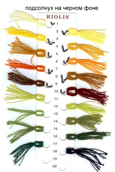 А я сейчас вышиваю подсолнухи по дизайну Риолис. Как-то так легко они у меня пошли, что аж удивительно. Если б еще не мучения с самостоятельным подбором ниток.... Вот схема вышивки: Вложение: