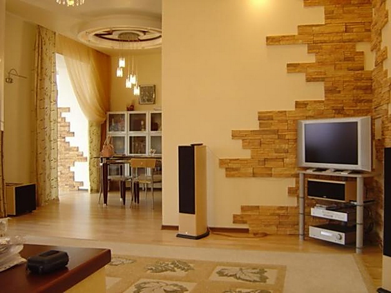 Люстра на последнем фото - просто ужасная)))) Я это фото выложила как вариант гостинной с отделкой декоративным камнем. Люстра - жуть.