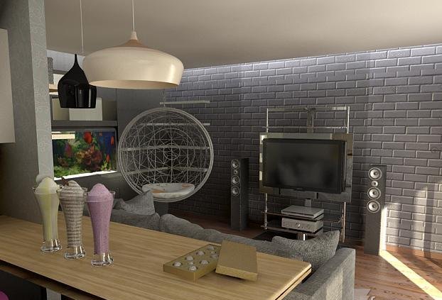 Нюша писал(а): когда большой дом...и в гостиной делают одну стенку с кирпича...это смотрится в общей картинке...но когда в однокомнатной квартире такое делают...это для меня смотрится чуть не в тему..ведь хочется уюта, тепла...домашнего... мне люстра которую вы обсуждаете - напоминает ободок колеса к  сипеду.. Не вижу разницы.Если сделать все со вкусом,то будет смотреться уютно.Это ведь декоративный элемент,а не настоящий кирпич.Если это однокомнатная квартира,то что надо все обоями обклеить и все?Вот вариант.Чем плохо? Вложение: