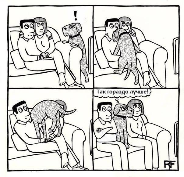 Наша собака аж так не наглеет, она просто ложится рядом и прижимается близко близко к мужу