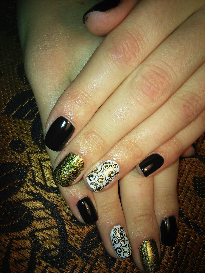 Оригинально, так я понимаю литье это где золотые ноготки, а завитки чем нарисованы? Черный гель-лак какой марки? Я коди не нашла, взяла другой, так не могу добиться насыщенного черного цвета, посоветовали взять гель-краску черную коди, говорят что просто просушить дольше, буду пробовать. На счет китайской росписи, так нужно точно пойти курс окончить, так все это красиво