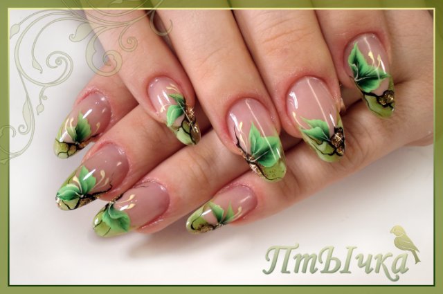 Понравились в зеленых тонах ноготки на фото Жаклин, и форма хорошая, хоть вроде и нарощенные, но очень классно выглядят. Вот такой вариант еще не плохой, обычно китайская роспись выглядит наляписто, а тут даже я бы сказала нежно, такой маникюрчик я бы сделала себе с удвольствием