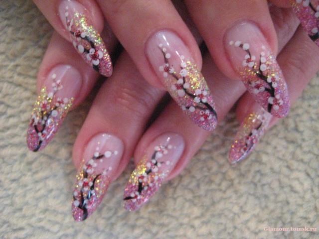 Да, не плохо, очень форма ногтей и длинна понравились. Вот только мне без самой веточки и цветов понравилось бы больше, ноготки были бы повеселее, все таки блестки удачно подобрали.