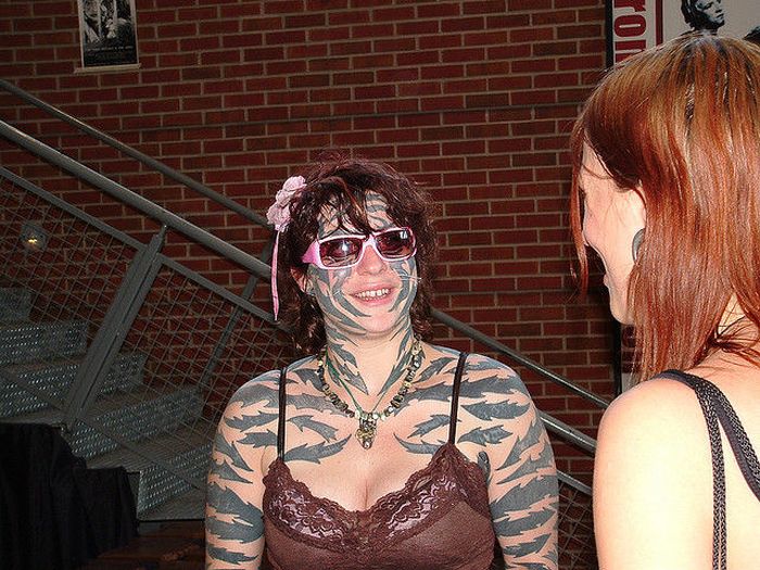 Девушки с татуировками бывают разные, в основном все в меру и красиво смотрится, но есть и такие "красотки"