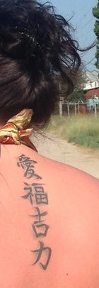 Жаклин писал(а): Ok.Sa.Na писал(а): Я не вижу ничего плохого в тату)) Сегодня при наших технологиях и при большом желании они выводятся...только конечно это затратно. Я считаю (и так и сделала) что тату должно быть в таком месте, которое не сильно на глаза попадается, и не надоедает)))) Я так понимаю, у Вас есть тату, а какое и где? Разумеется, если это не секрет. да, у меня есть тату, на спине сверху, 4 китайских иероглифа, которые идут со мной по жизни