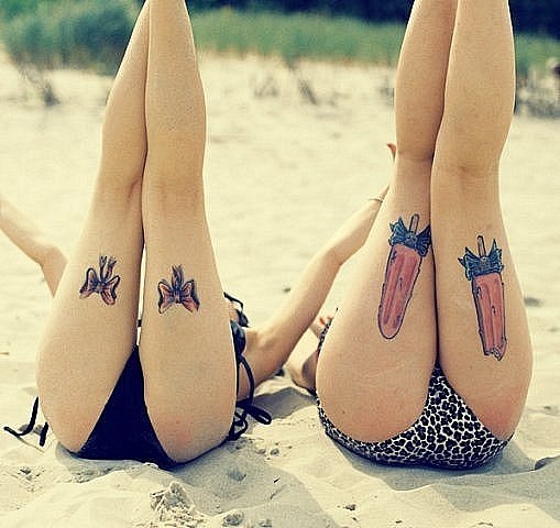 Странные бывают татуировки, меня удивляют тату на задней стороне бедра, тем более в виде мороженного или бантиков, а это популярно сейчас я смотрю.