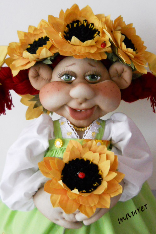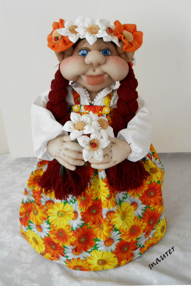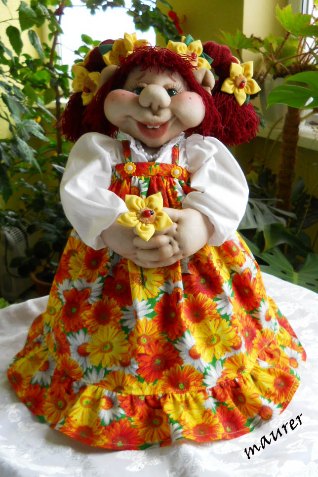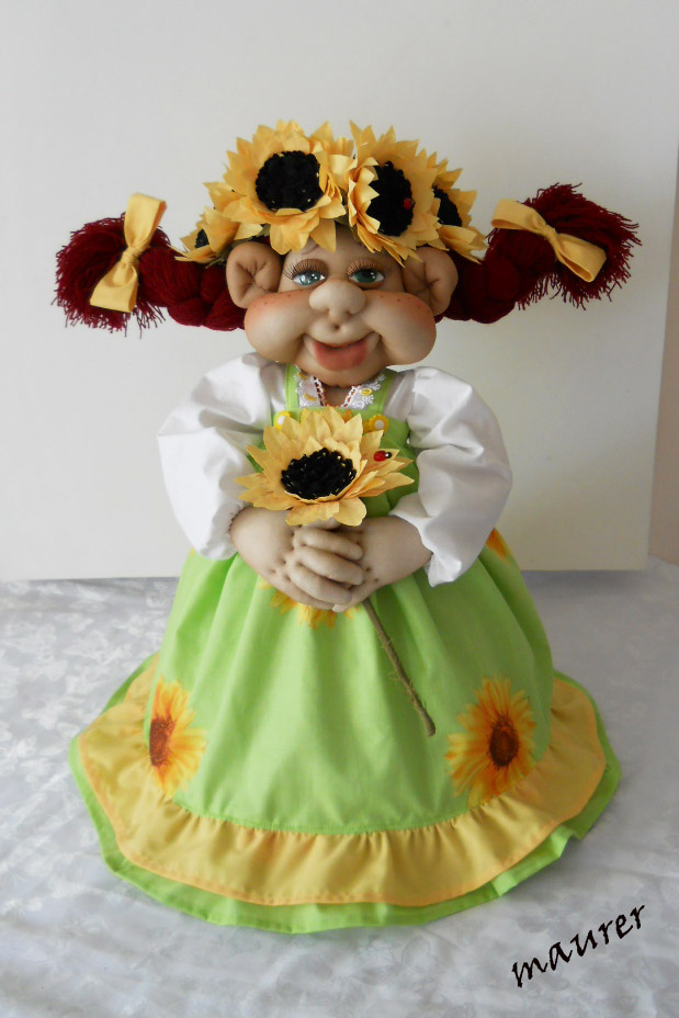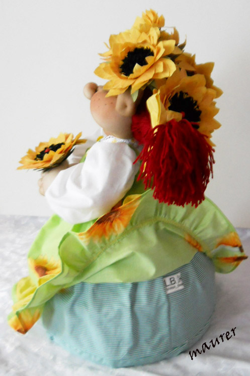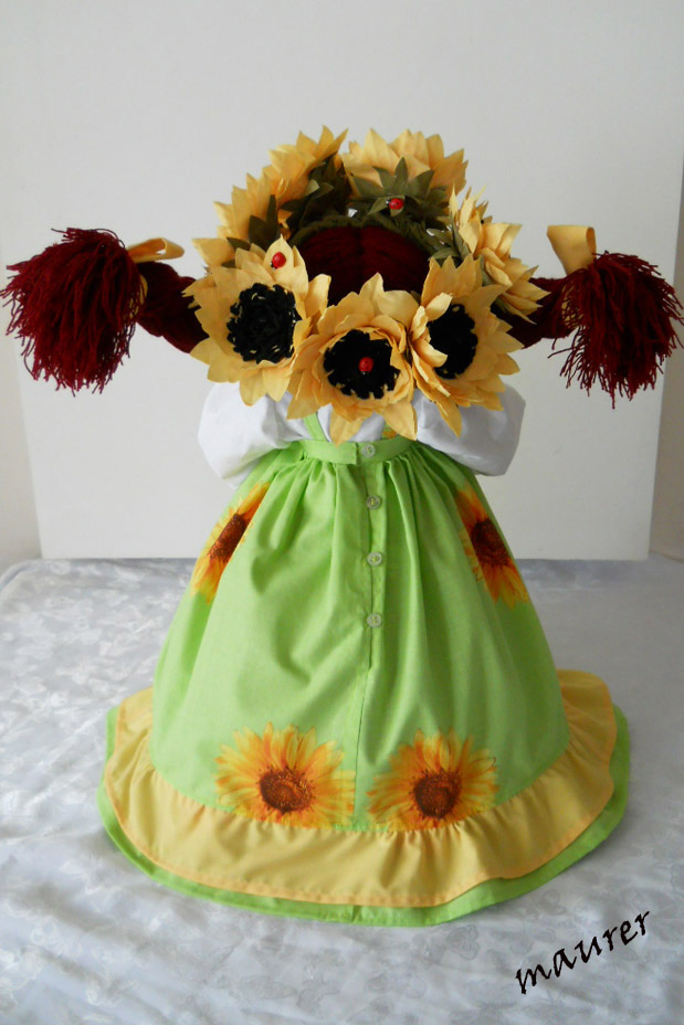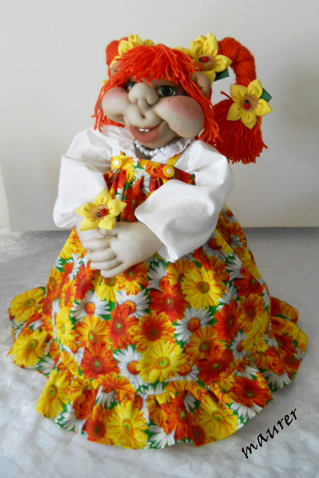 Ульянка кукла-грелка. Высота 50см. Материалы: бязь, поплин, капрон, синтепон, ватин. Подсолнухи сделаны из ткани. Способ для меня новый, но и процесс и результат мне понравился. Вложение: