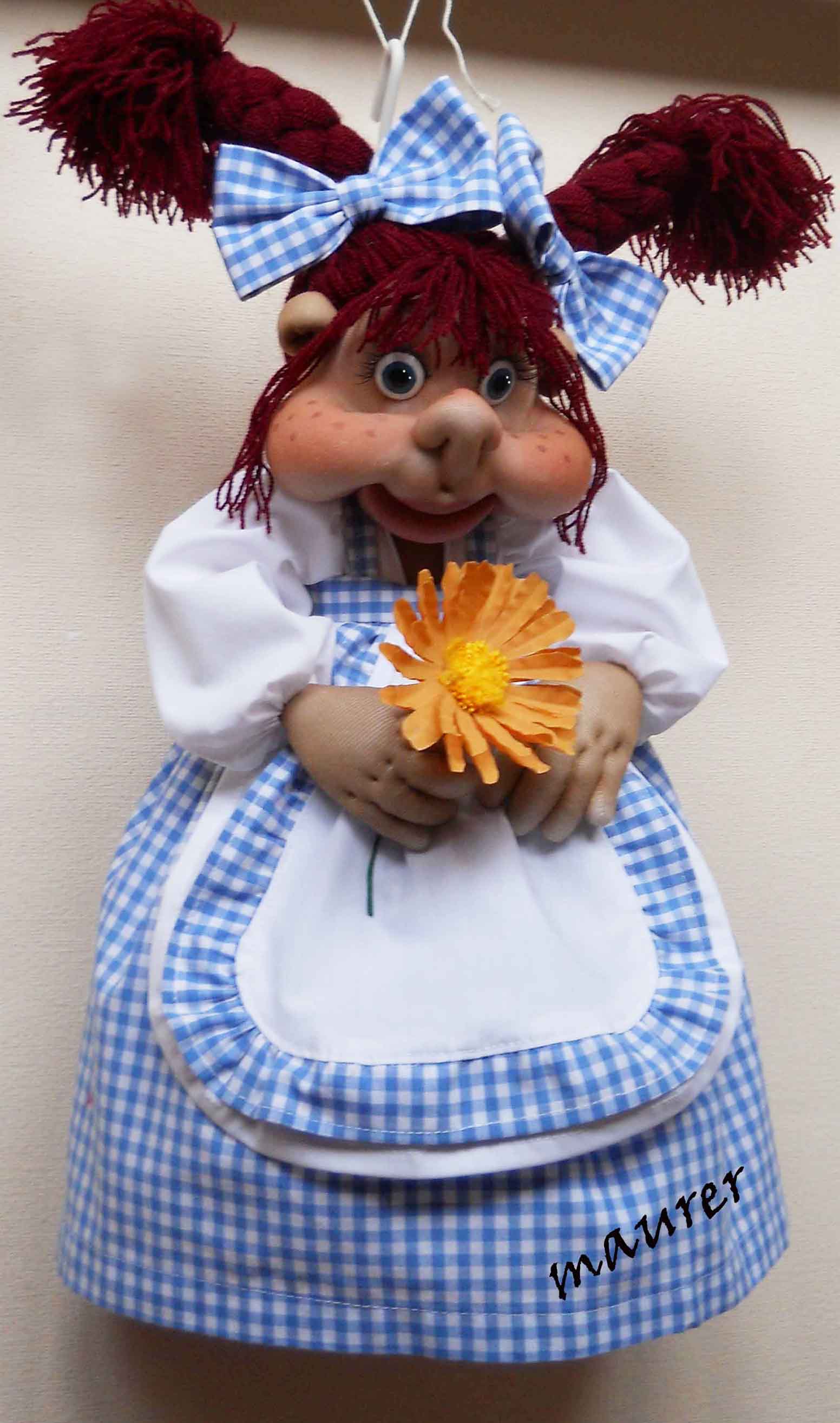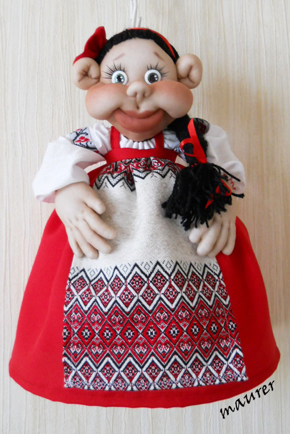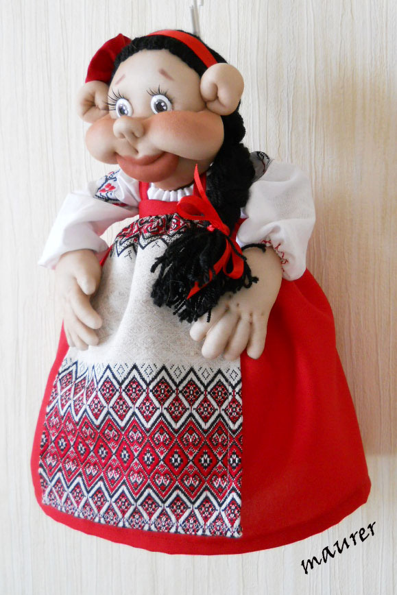 Верхняя часть может выглядеть по-разному. Это может быть конопатая рыженькая девочка, пушистая заинька, деловой гусь, милая кошечка, забавная коровка, важная курочка или то, что Вы захотите.