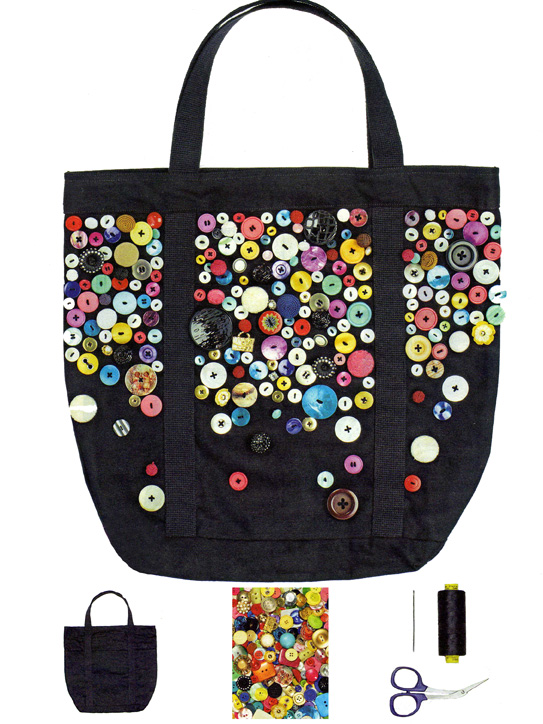С помощью пуговиц можно обычную льняную сумку превратить в модную дизайнерскую вещь. Потребуется собственно говоря сумка, много-много пуговиц, и самое главное - свободное время и терпение. Модно пришивать пуговицы в произвольном порядке, а можно каким-то чудацкими узорами.