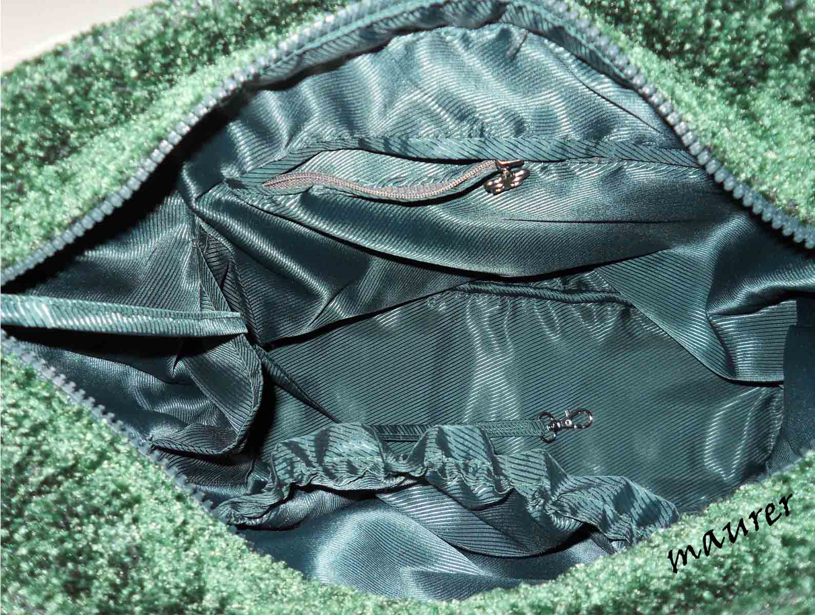 Сумка "Деревенские просторы". Материал верха мебельная ткань, материал аппликации-вельвет. Синтетическая зеленая подкладка в полосочку. Высота 31см, длина 40см, дно 13х32см, длина ручки 95см. Внутри три кармана: один карман на резиночке , один карман на молнии с хромированной висюлькой в виде бабочки в рамочку и карман для ключей. Поводок с хромированным карабином для ключей. В аппликации использованы разные бусины и нитки "ирис". Вложение: