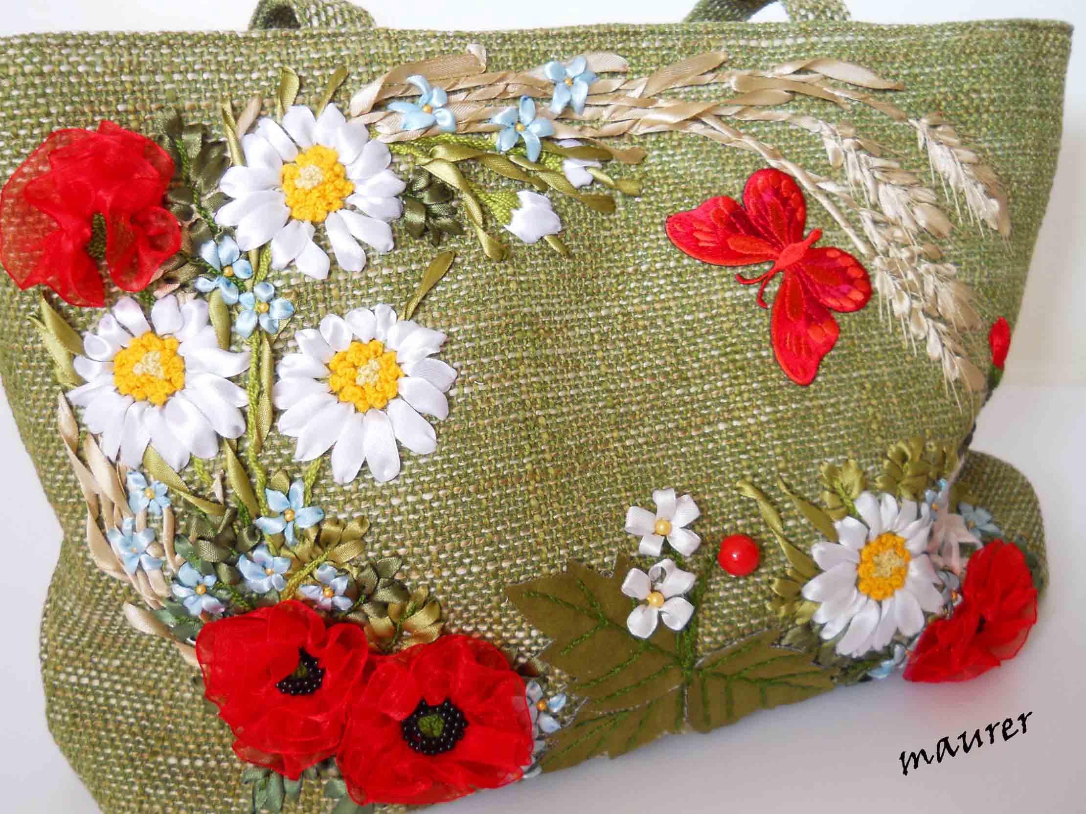 maurer писал(а): Сумка "Лето красное" Размеры: длина 44см, высота 28см, ширина 11см, ручка 60см. Ткань мебельная, подкладка хлопок. Внутри большой карман на молнии и карманчик для мобильного на резиночке. Вышивка атласными и капроновыми лентами 25мм,12мм,6мм, нитками ирис, бисером, бусинами. В НАЛИЧИИ Все сумки у Вас красивые, но мне очень эта понравилась, для лета очень хорошо подойдет.