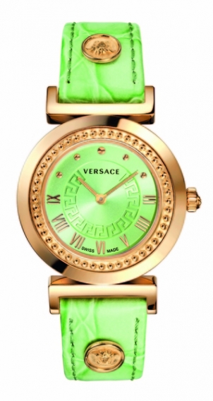 Итальянский Модный дом Versace представил новую коллекцию часов Versace Vanity, данная линия предназначена для прекрасной половины человечества, для женщин. В коллекцию Versace Vanity вошли аксессуары белого, черного, голубого, зеленого и фиолетового цветов, на кварцевом циферблате изображен фирменный декор Дома Versace. Маленькие шипы украшают безель и профиль всей часовой панели, а крупные, с головой Медузы, находятся на ремешке. Все часы этой линии изготовлены из розового золота или нержавеющей стали, с ремешком из крокодиловой кожи или же с металлическим браслетом, содержат швейцарский кварцевый механизм. Стоимость часов от 600-3000 тыс. евро, причем более дорогие модели коллекции украшены бриллиантами. Как вам эта коллекция? Лично я ничего особенного не отметила, если не брать во внимание цену.