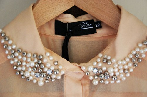 Но цены на такие украшения просто отпугивают, видела от 600 грн Последний воротник мне очень понравился, а еще нравится, когда в рубашках расшиты воротнички, к примеру жемчугом, очень стильно и нарядно