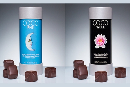 Не так давно на западе появились весьма необычные сладости, это трюфельные конфеты CocoPMS, которые помогают женщинам бороться с предменструальным синдромом. Как же они действуют? Эти сладости облегчают боль, успокаивают нервы и просто приносят удовольствие. В состав конфет входит черника и авраамово дерево, эти компоненты способствуют тому, чтобы устранить гормональные нарушения и снизить остроту болей. Сладости, которые выпустила компания Xan Confections, можно будет приобрести на сайте компании, стоять они от 5 до 40 долларов в зависимости от веса. Еще фирма Xan Confections выпускает полезные для сердца конфеты CocoHeart, сладости с фолиевой кислотой для будущих мамочек CocoPreggers, трюфели для питания мозга и поддержания памяти CocoBrain и вкусности для укрепления иммунитета CocoWell.