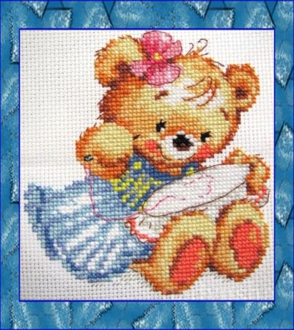 Хоть и скромнее, но тоже очень милый мишка! Вот еще не сложная схема вышивки крестом для детей: