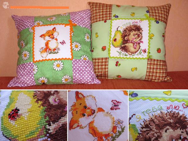 Как раз можно вышить ко дню влюбленных. А еще очень понравилось как оформили обычные вышивки в подушки для детской комнаты: Вложение: