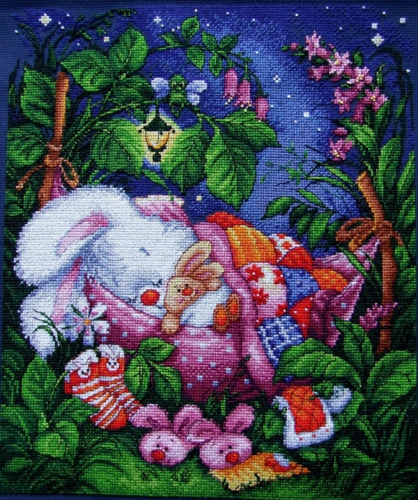 Как посмотришь на эту красоту, так сразу хочется научиться вышивать. Красота-то какая! Особенно малышка с зайкой! Само умиление. Очень напоминает мою доченьку маленькую.