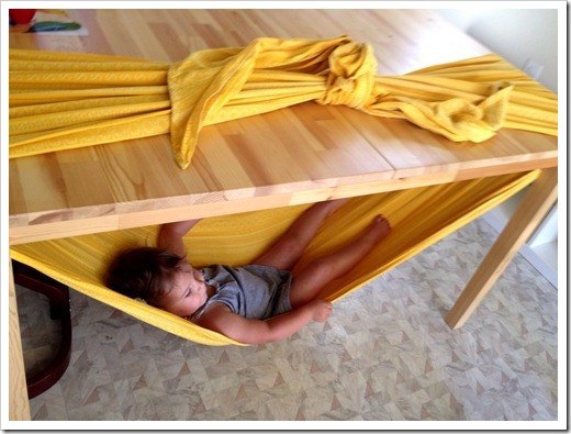 Я бы не разрешила ребенку в таком гамаке баловаться) А мне понравилась идея с полкой для обуви, правда для дачи, а не для квартиры