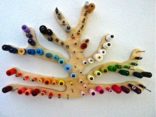 Как вам такая поделка для хранения ниток? Наверно для ниток для вышивания вряд ли подойдет, но для тех, которыми шить - будет интересно. Особенно если есть какой то свой уголок для шитья.