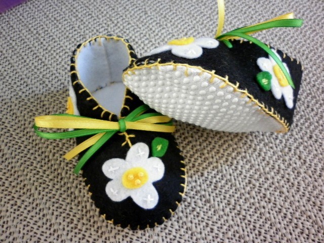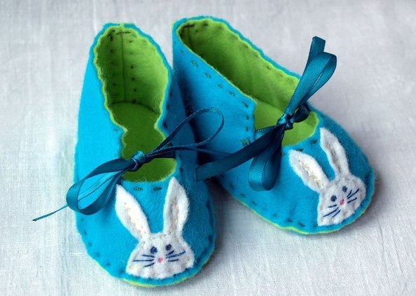 Очень понравились детские пинетки из фетра. Можно сделать на любой вкус и любую тематику.