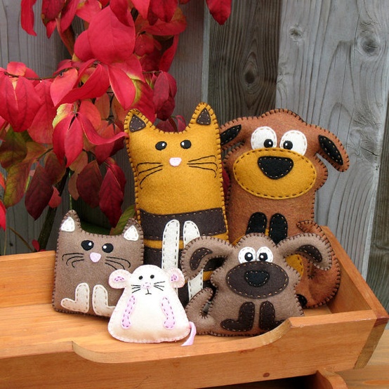 Как вам такая семейка лесных зверят из фетра?Мне понравилось. Да и шить такие игрушки легко. Вложение: