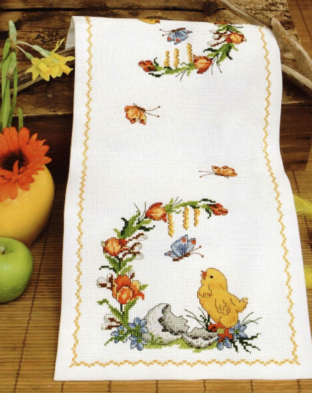 Нашла схему вышивки крестиком очень красивого рушничка. Очень яркий и нежный рисунок. По-настоящему весенний, праздничный.