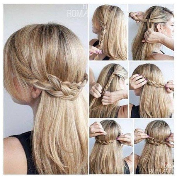 А ось для тонких і не дуже довгих можна спереді простенько так заплести і вже ззаді щось зробити)))