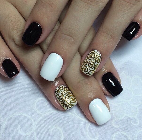 Мне понравился больше всего черно-бело-золотой, завитки очень красиво прорисованы. Последний чересчур наляпан, я бы сделала и однотонные ногти, чтоб не все украшены были. А что-то уже повторили?