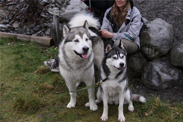 между маламутами и хаски внешнее различие не сильно заметно,но если они рядом друг с другом получается вот так..))