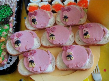 Мне аж самой захотелось бутерброда собачку...вот еще нашла пару вариантов...что можно на праздник детский сделать Вложение: