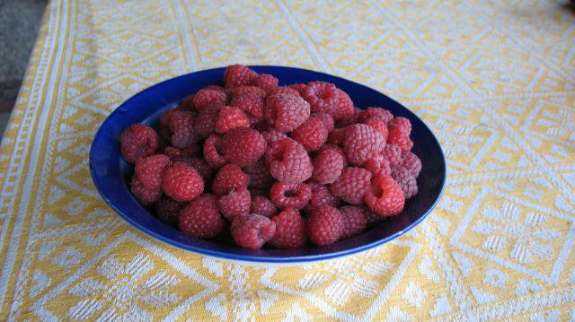 Таруса – ягода созревает 8-10 июля, высокоурожайная малина штамбового типа. Кусты Тарусы практически не требуют опор, но все же урожай лучше получается при наличии шпалеры. Ягоды крупные и очень крупные (7-13гр.), урожай с одного куста 3-4 кг., с одного гектара до 20т., по форме «точёные» с красивой блестящей поверхностью приятного десертного вкуса. Мощно развитые прямо рослые кусты этого сорта компактны, состоят из утолщенных бесшипных побегов. Малина неприхотлива, куст компактен, ягоды плотные, транспортабеленые.