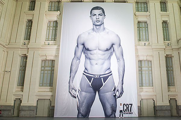 В четверг, 31 октября, в Мадриде известный футболист Криштиану Роналду презентовал собственную линию белья под названием CR7. Полюбоваться обнаженным торсом 28-летнего футболиста можно было всем желающим (я бы тоже хотела). На одном из зданий площади Сибелес был размещен постер с изображением Роналдо, высота которого составила 19 метров. Футболист разработал дизайн своей коллекции совместно с нью-йоркским модельером Ричардом Чаи. Трусы уже доступны в Португалии по цене от 25 до 30 евро. Пресса же иронизирует по поводу сходства между рекламными фото Криштиану, созданными фотографом Джампаоло Скура, и кадрами рекламной кампании другой линии мужского белья - той самой, которую представлял Дэвид Бекхэм. А вы что думаете?