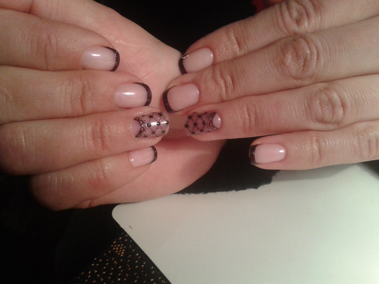 По моему для третьего раза прекрасно получилось. Александровна, шикарная работа, так ровно и точно, вы уже хорошо набили руку, долго делали этот маникюр себе? Это впервые?