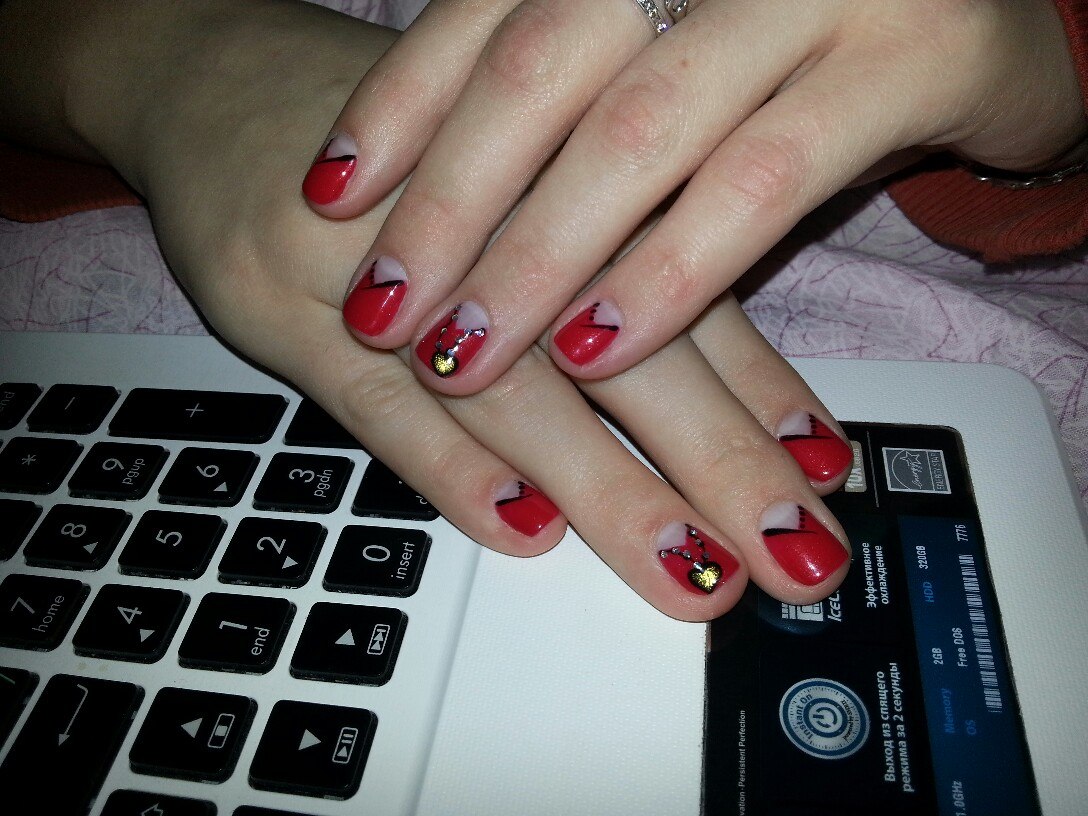 Мне сегодня моя подружка любимая покрыла ногти гель лаком и камушками красиво украсила пальчик безымянный, получилось очень клево, хожу гляжу и радуюсь, весь вечер хорошее настроение.