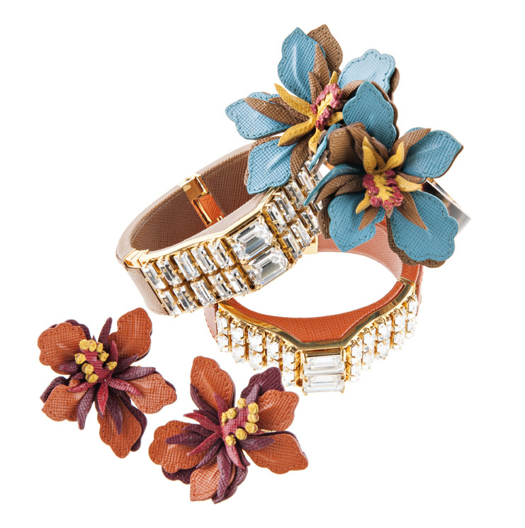 Известный модный Дом Prada представил на обозрение своим поклонникам новую коллекцию украшений весна-лето 2014. Главной темой своей новой линейки бренд сделал цветок гибискуса. Коллекция выполнена из необычных материалов. Традиционные, для ювелирных изделий, золото, палладиум и кристаллы, дизайнеры Prada дополнили натуральной кожей разных оттенков — от кораллового до бирюзового. В нее вошли браслеты различных форм, кольца, а так же серьги, все украшения сделаны вручную. Их роскошь сразу же напоминает о блистательной эпохе ар-деко. Кроме того, в новой коллекции решающую роль играет растительный мотив, свойственный для декора времен изысканного декаданса.