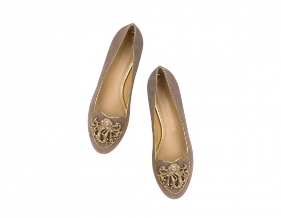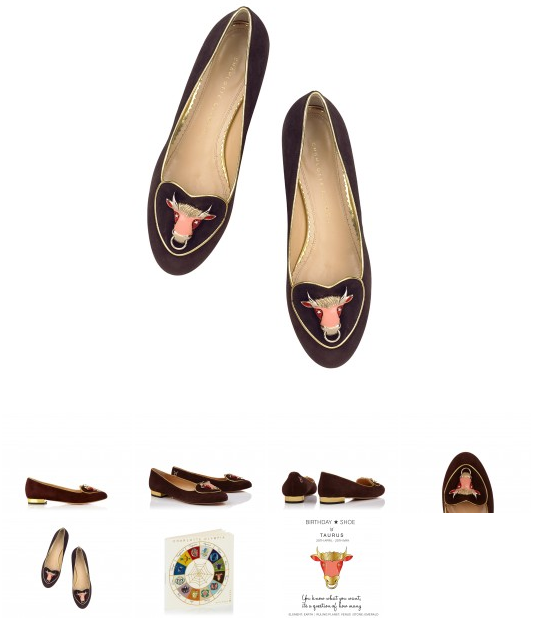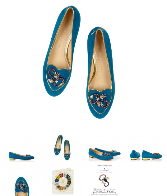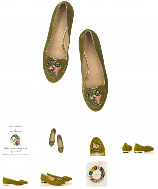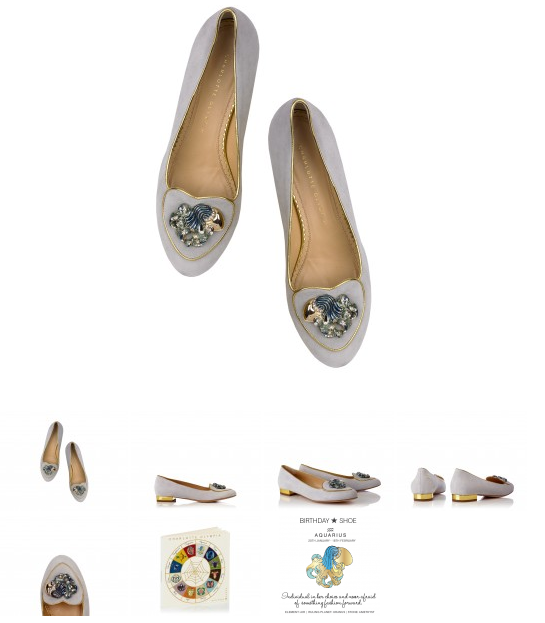 Хорошо всем известный английский дизайнер Шарлотт Олимпия представила нашему вниманию необычную коллекцию туфлей. Линейка одержала название Birthday Shoes. Модельер посвятила ее двенадцати знакам зодиака, то есть каждая пара туфлей относится к определенному знаку. Обувь украшают изящные фигурки в виде символов каждого из них, инкрустированные кристаллами Swarovski. Туфельки выглядят простенькими, они без каблучка, их можно носить, как каждый день, так и одевать на выход. Ну и конечно, образ получится не полным, если не взять с собой клачт в таком же стиле. Дизайнер продумала и это, Шарлотт Олимпия создала клатчи декорированные такими же знаками зодиака.