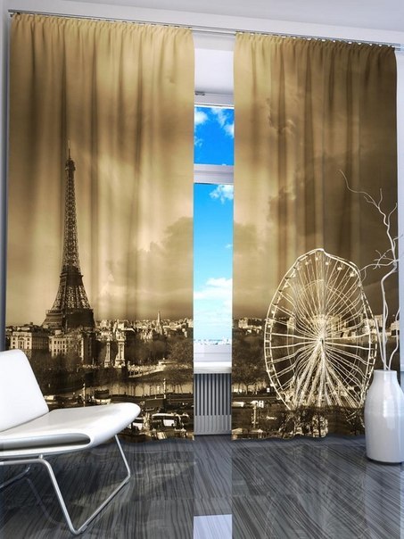 А вот идеи Мэри с шторами с рисунком мне понравились бы комнате для маленького ребенка или для подростка. Для девочки красиво было б с цветами, а для мальчика с фото ночного города.
