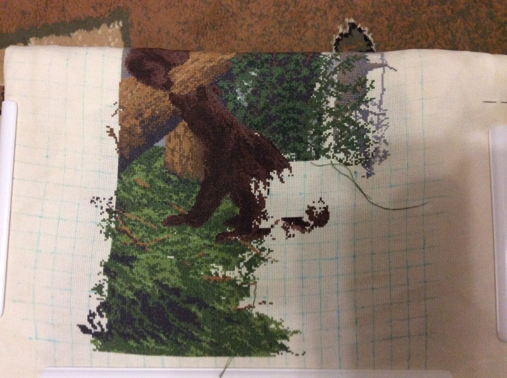 Добрый день. Я присоединяюсь к вам. Тоже начала вышивать "три медведя". Заканчиваю пятый квадратик, уже 500 крестиков прошла. Возникли пару вопросов: 1. Светлые места обязательно вышивать полукрестом? Или можно и полными? Полукрестики как то теряются, если они в "темной гуще" по одному-два. И выглядит как то не ровно. Если я полные крестики вышивать буду, хватит ли ниток? 2. А как у васвыглядит задняя сторона?Первой моей вышивкой был рушник на свадьбу сестрёнке. Там задняя сторона была как и передняя. Ни протяжин, ни узелков, всё очень аккуратно. Ну я и просидела на задней стороне не меньше чем на передней. Теперь вышивается каждый крестик, без промежутков. И канва помельче. Решила попробовать способом парковки. Нравится. Ну сзади выглядит. .. чёрт ногу сломает. Вы обращаете на ето внимание? Спасибо за ответы. Надя