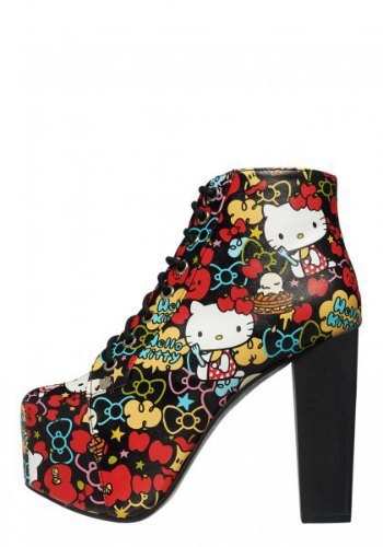 Популярный американский обувной бренд Jeffrey Campbel, который прославился массивными ботильонами на высоком каблуке, выпускает новую коллекцию. Марка решила посвятить свою новую линейку, наверное, одному из самых милых персонажей современности, которых любят не только дети, но и некоторые взрослые – Hello Kitty. Если учитывать, что в 2014 году персонажу Hello Kitty исполняется 40 лет, можно понять причину выпуска данной коллекции. И хотя в линейке всего 10 моделей, думаю они вам понравятся, ведь обувь выпущена как раз в духе Jeffrey Campbel, только с принтом в стиле Hello Kitty. На какой-то обуви можно увидеть саму кошку, на какой-то только определенный аксессуар – ее бант. В коллекции представлена обувь только на каблуке или платформе, на низком ходу вы здесь ничего не найдете. Можно отметить, вся обувь хоть и красива, но достаточно экстравагантна, так, что при ее выборе нужно быть осторожным, что бы не переборщить с образом. Вот, например, мне понравились меховые белые ботильончики на высоком каблуке, на щиколотке у них красуется большой красный бант. А вам, что понравилось? Кстати, стоимость этой обуви от $160 до $315. Остальные фото в галерее gallery/album.php?album_id=121