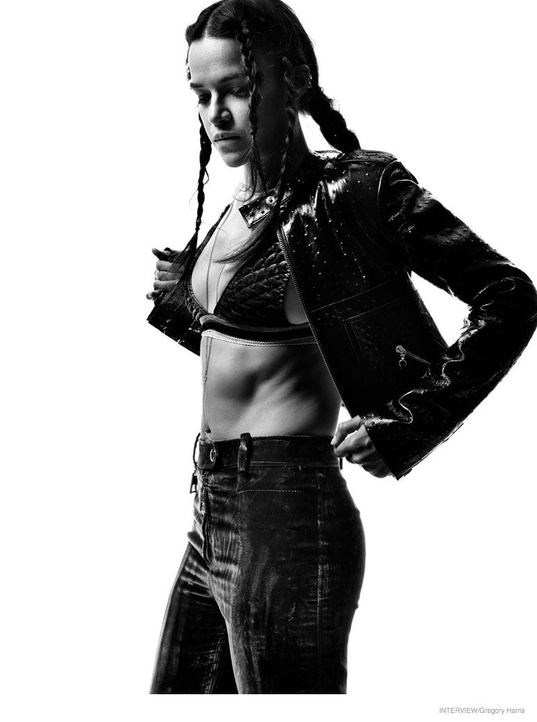 Давно мы все не слышали о звезде популярного экшина «Форсаж» актрисе Мишель Родригес. Эта девушка многим известна не только своими ролями, но и своим имиджем «плохой» девочки. Актриса встречалась с секс-символом Заком Эфроном, а потом имела тесные отношения с моделью Карой Делевиль. Последняя, кстати, вполне откровенно заявляла о своей бисексуальности. Но в скором времени мы с вами снова сможем увидеть Мишель на экранах, ведь не так уже долго осталось до премьеры седьмой части «Форсажа», в которой актриса будет играть главную роль. А пока мы ждем, то можем полюбоваться Мишель Родригес на страницах издания Interview Magazine. Думаю эта фотосессия, как раз и приурочена выходу очередной части популярного фильма. Фотосет проходил в духе глэм-рока, Родригес позирует в стильных платьях, белье и укороченных жакетах. На фото она сохраняет свой естественный немного грустный и невозмутимый вид. Я очень жду продолжения фильма "Форсаж", и так же хочу увидеть в нем Мишель. А что скажут наши форумчанки?