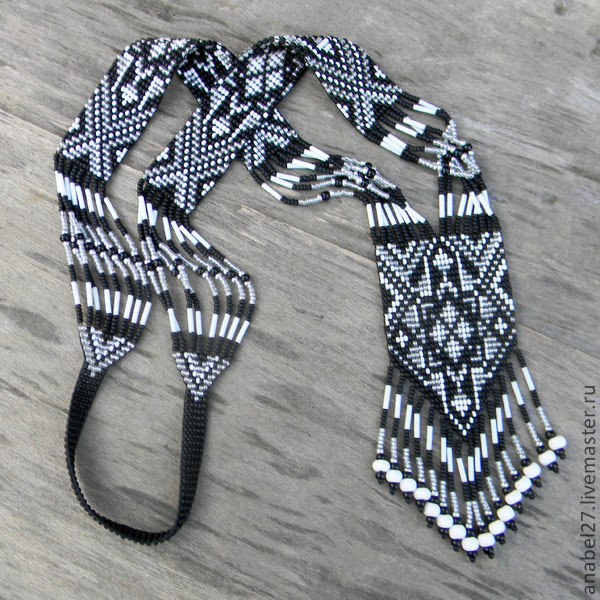 А у меня учительница в школе носила с черными водолазками похожее украшение из бисера. Смотрелось очень интересно.