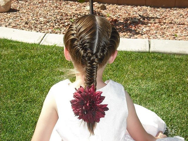 а мне нравится такая прическа для девочки, хотя, наверное, красивее без прядей. Кстати, она достаточно легко делается, я видела, как моя знакомая сама себе ее делала