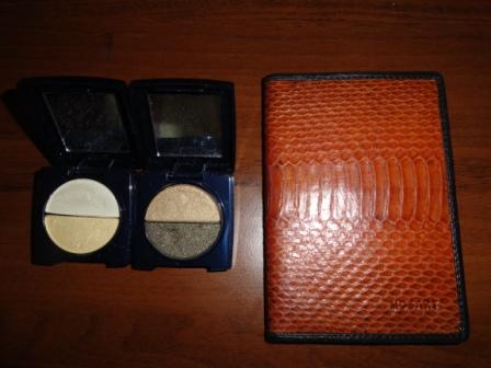 Тени Color me лежат без дела.Купила 4 штуки,когда была акция,оказалось много,да и хочу уже купить тени из люкса.Тенями не пользовалась,один раз только провела щеточкой.Также рядом обложка на паспорт из кожи змеи Вложение: