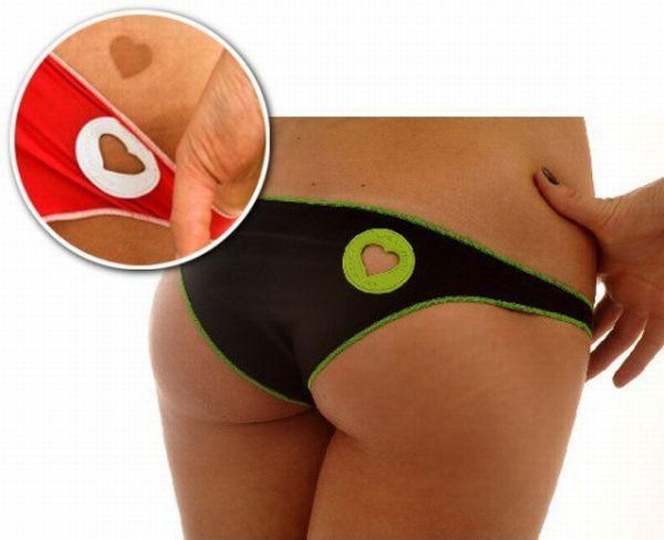 Новинка этого сезона купальник с сердечком на попе, по-моему очень прикольно получается и не нужно, что-то на себя наклеивать, одел купальник и загораешь)